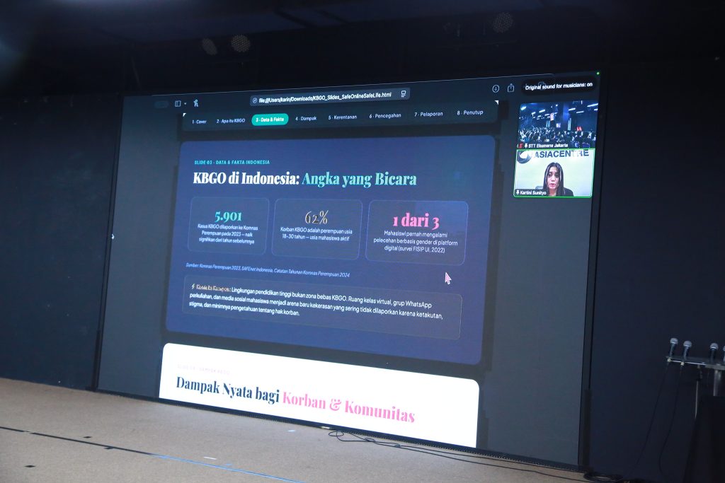 Seminar ini juga mengulas dampak KBGO yang bersifat luas dan berlapis bagi korban. Dari sisi psikologis, korban dapat mengalami trauma, kecemasan, hingga depresi berkepanjangan. Dampak sosial mencakup isolasi, stigma, serta victim blaming dari lingkungan sekitar. Dalam aspek akademik, korban berpotensi mengalami penurunan prestasi hingga kehilangan motivasi belajar. Selain itu, dampak digital seperti penyebaran konten yang sulit dikendalikan semakin memperparah kondisi korban.